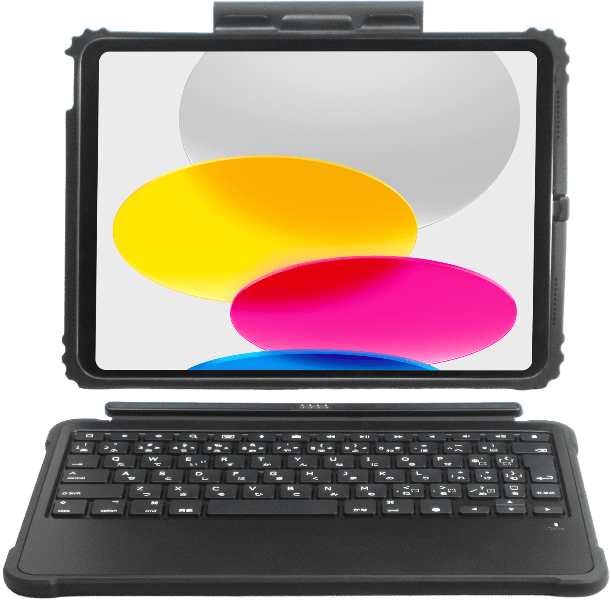 GIGAスクールに求められる様々なご要望に対応した、iPad用のキーボード付きケースです。キーボード分離タイプなので使いやすく、接続ケーブルの見えない設計でスマートな使い心地を実現しています。