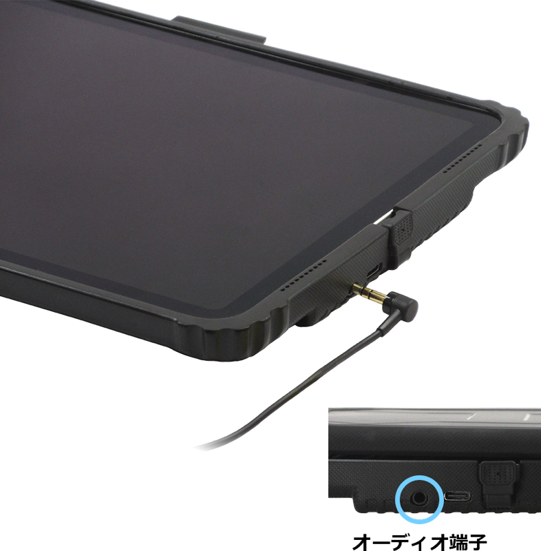 オーディオ端子をケースの本体側に搭載。キーボードを取り外して本体側だけでもヘッドフォンを使用できます。