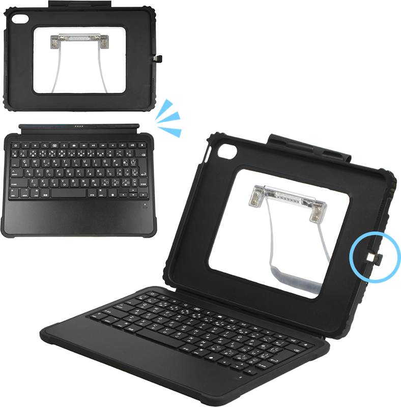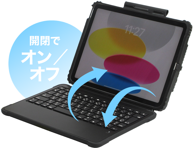 キーボードの開閉に連動して、iPadが自動でオン/オフ。電源ボタンを押す手間が省け、スムーズな操作が可能。バッテリー消費を抑え、利便性を向上させることができます。