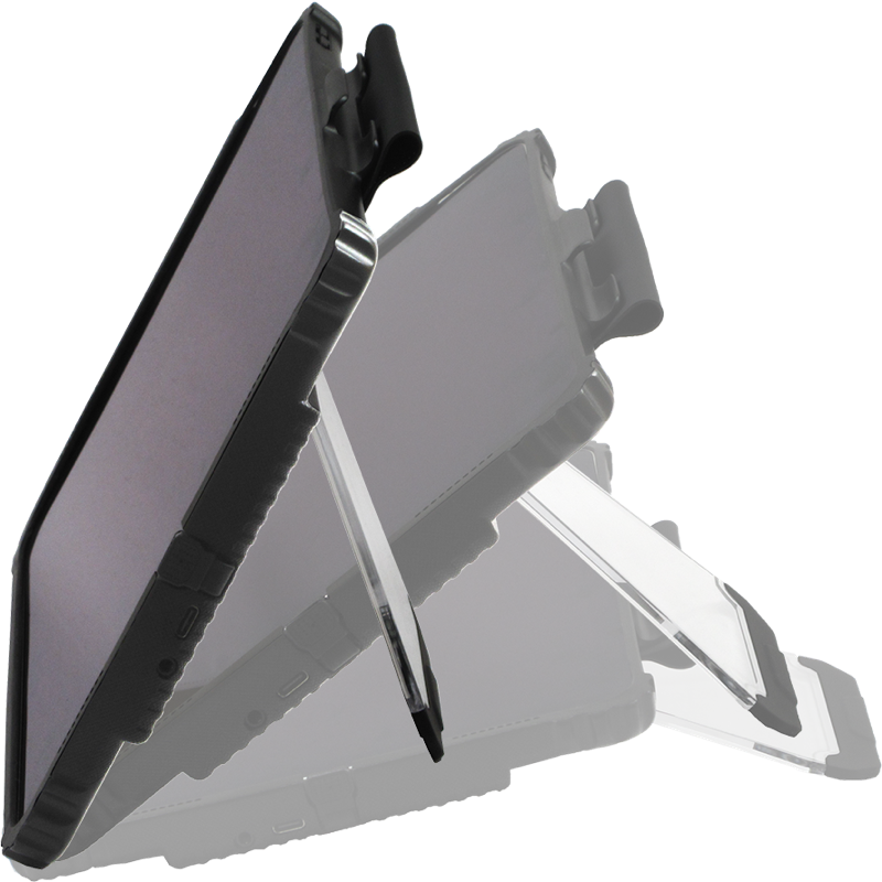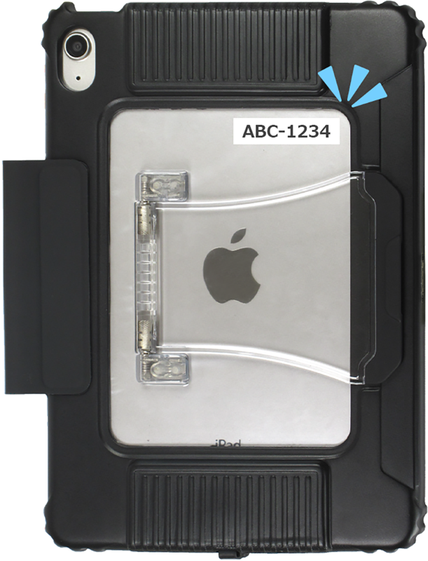本体側背面はクリア素材なので、iPadに貼った管理番号などが見やすく便利です。