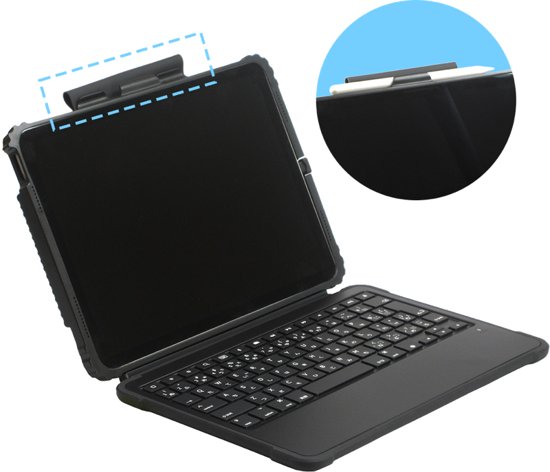 iPadとキーボードはUSB Type-Cで接続。ケーブルはケースに内蔵されているので、外に露出することなくスマートに使用できます。ケースとキーボードは独自のマグネット脱着方式により、スムーズなつけ外しが可能です。
