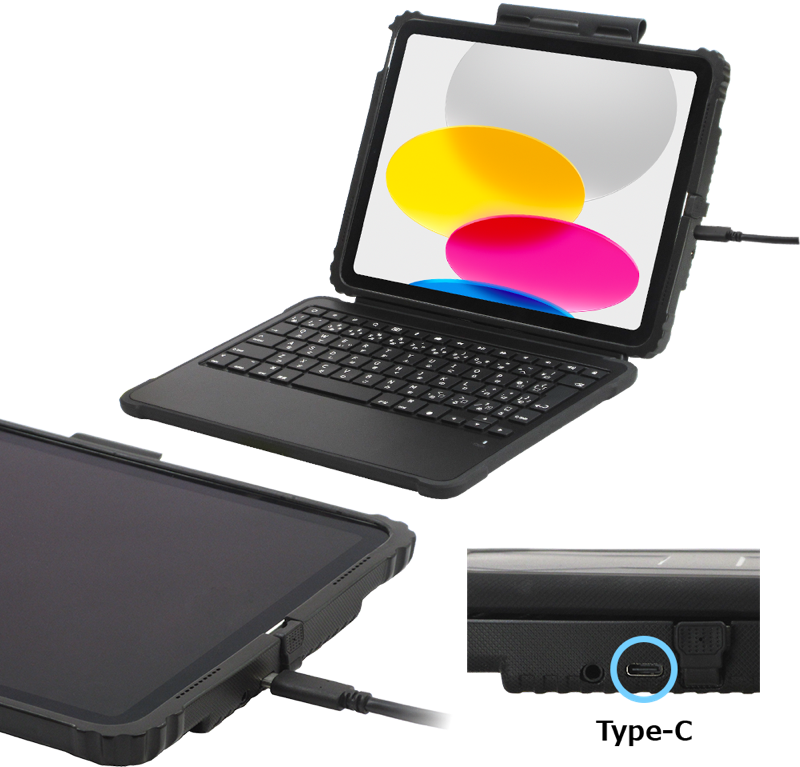 充電用のUSB Type-C端子をケースの本体側に搭載。給電しながらキーボードを使用することもできます。
