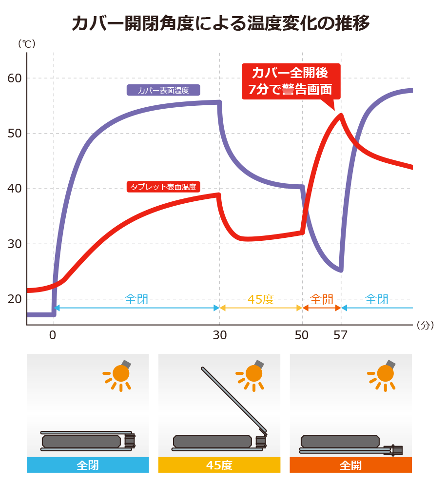 夏の屋外でタブレットを使用していると、本体に高温警告画面が表示され冷却されるまで使用できなくなり作業効率が低下してしまいます。
