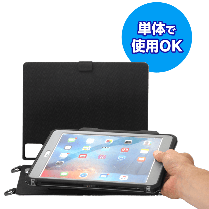 お手持ちのiPadケースをカバーに装着してご使用いただくことは、ケース毎に仕様が異なるため、残念ながらおすすめしておりません。安心してお使いいただくため、付属の専用ケースをご利用ください。