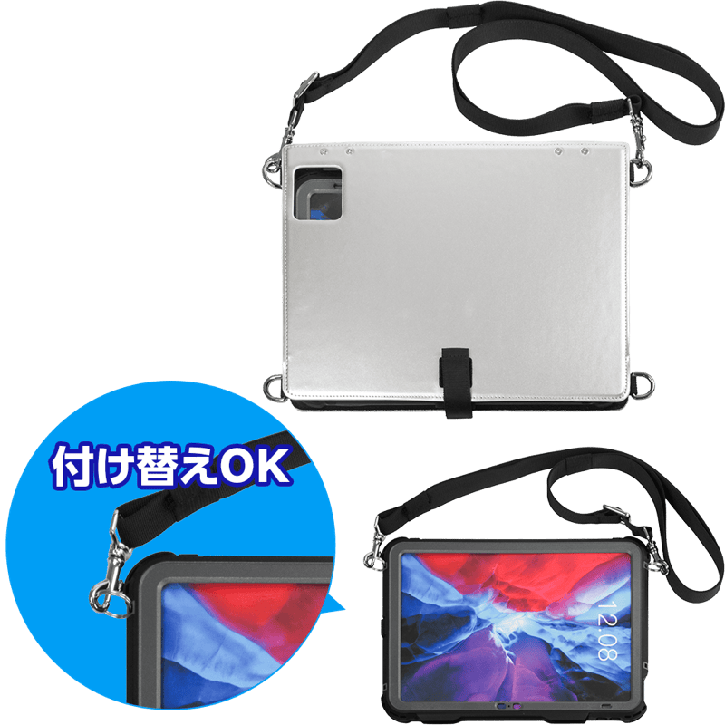 IP68防塵・防水ケースに付属の二重リングを装着すれば、サンシェードカバーのストラップを取り付けたり、付け替えたりできます。持ち運びしやすく、用途に合わせた使い分けが可能です。